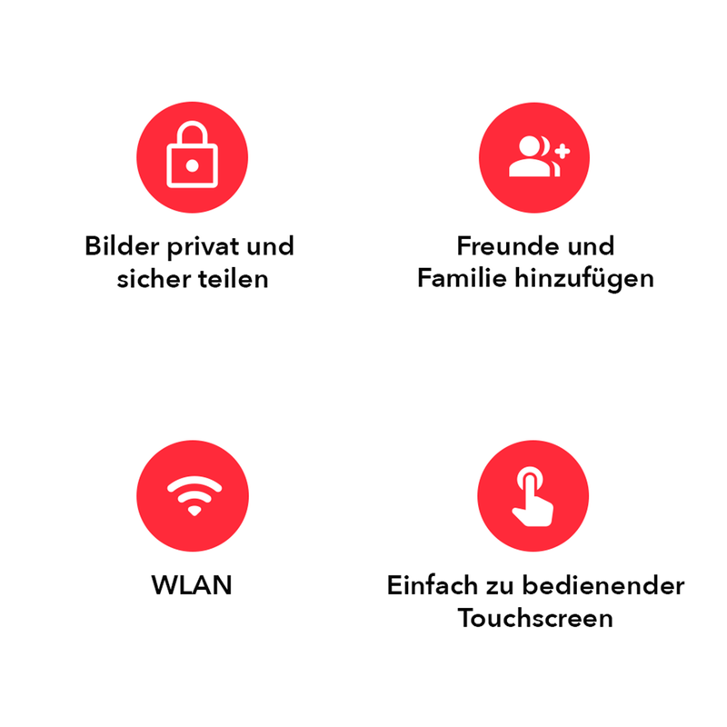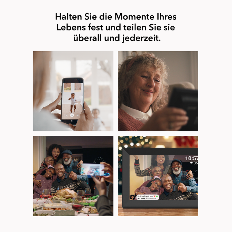 Teilen Sie Ihre Lieblingsmomente mit Ihren Liebsten, ganz egal, wie viele Kilometer Sie trennen. Per App können jederzeit neue Bilder hinzugefügt werden – perfekt, um gemeinsame Erinnerungen lebendig zu halten.