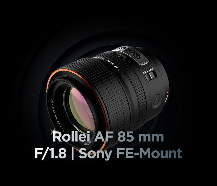 The Rollei 85 mm f/1.8 AF for Sony combines precise portrait look with modern features such as linear aperture ring, STM autofocus and eye tracking. Developed for high -resolution full -frame cameras - with robust metal housing, intuitive operation and impressive bokeh.