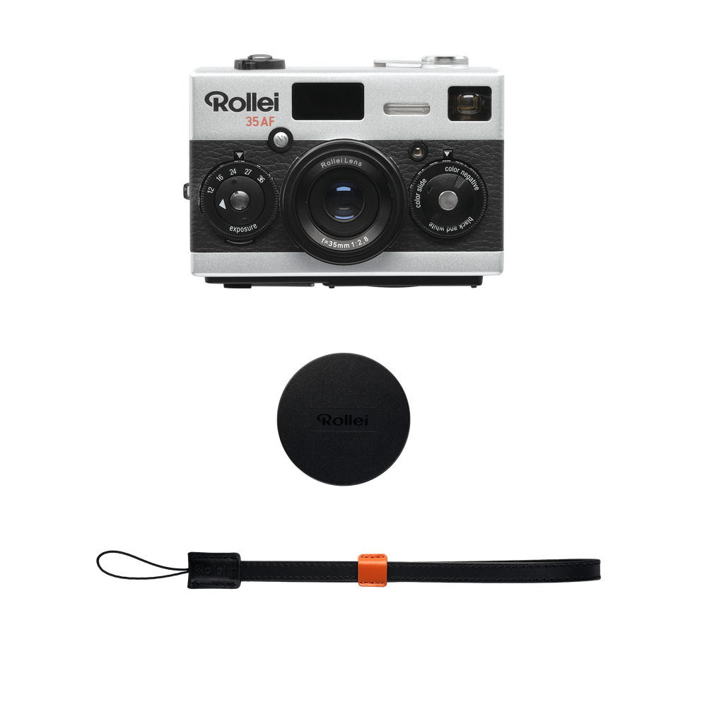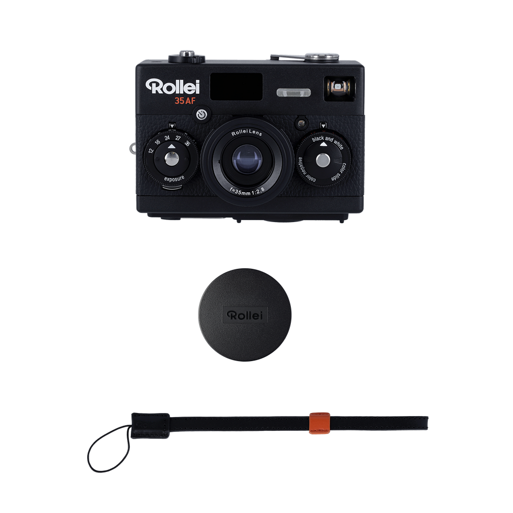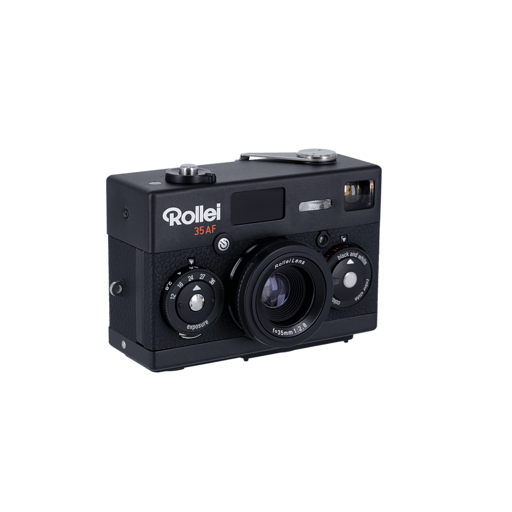 The Rollei 35 AF offers precise autofocus with lidar, a high-quality 35mm f/2.8 lens, an integrated flash, an OLED display and an iconic design. Other characteristics are an automatic exposure, a practical self -timer and the use of 35mm film.