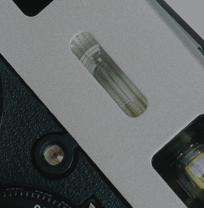 The film is loaded manually and transported on with a lever. The lever must always be completely stretched forward to avoid double exposure.