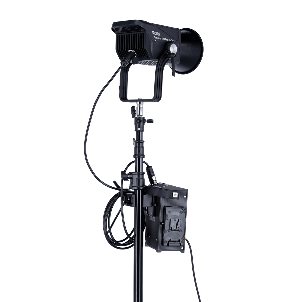 Das Candela 600 Pro Bi-Color kann sowohl per Akku als auch mit Netzstrom betrieben werden. Dies macht es zu einem vielseitigen Begleiter, egal ob Sie Aufnahmen im Studio oder Outdoor machen. Die Mobilität kann durch den separat erhältlichen V-Mount Akku 99Wh Pro erreicht werden. Einfach ein bis zwei Akkus an die Kontrollbox anschließen und schon kann es losgehen.