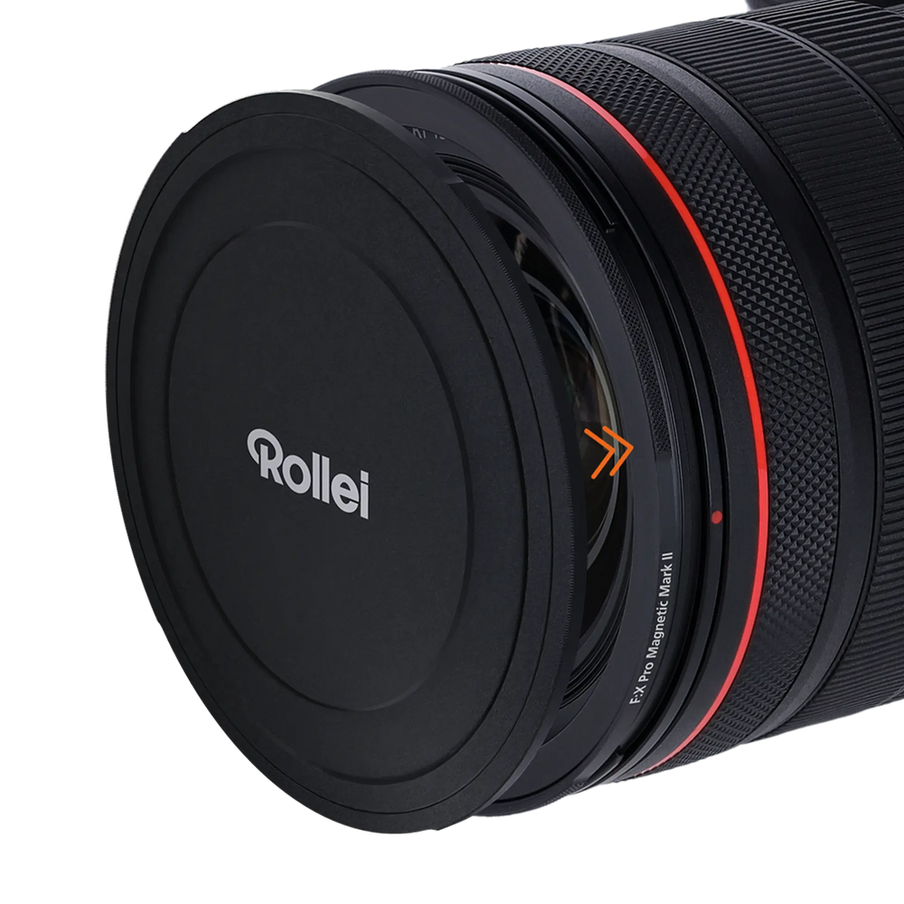 Zudem bietet die magnetische Frontkappe die Möglichkeit, als Objektivdeckel eingesetzt zu werden. Sie können hierfür einfach den jeweiligen F:X Pro Magnetischen Step-Up-Ring Mark II oder F:X Pro Magnetischen Basisring Mark II auf Ihrem Objektiv montiert lassen. Die F:X Pro Magentische Frontkappe Mark II findet nach dem Fotoshooting hier schnell ihren Platz und schützt das Objektiv.