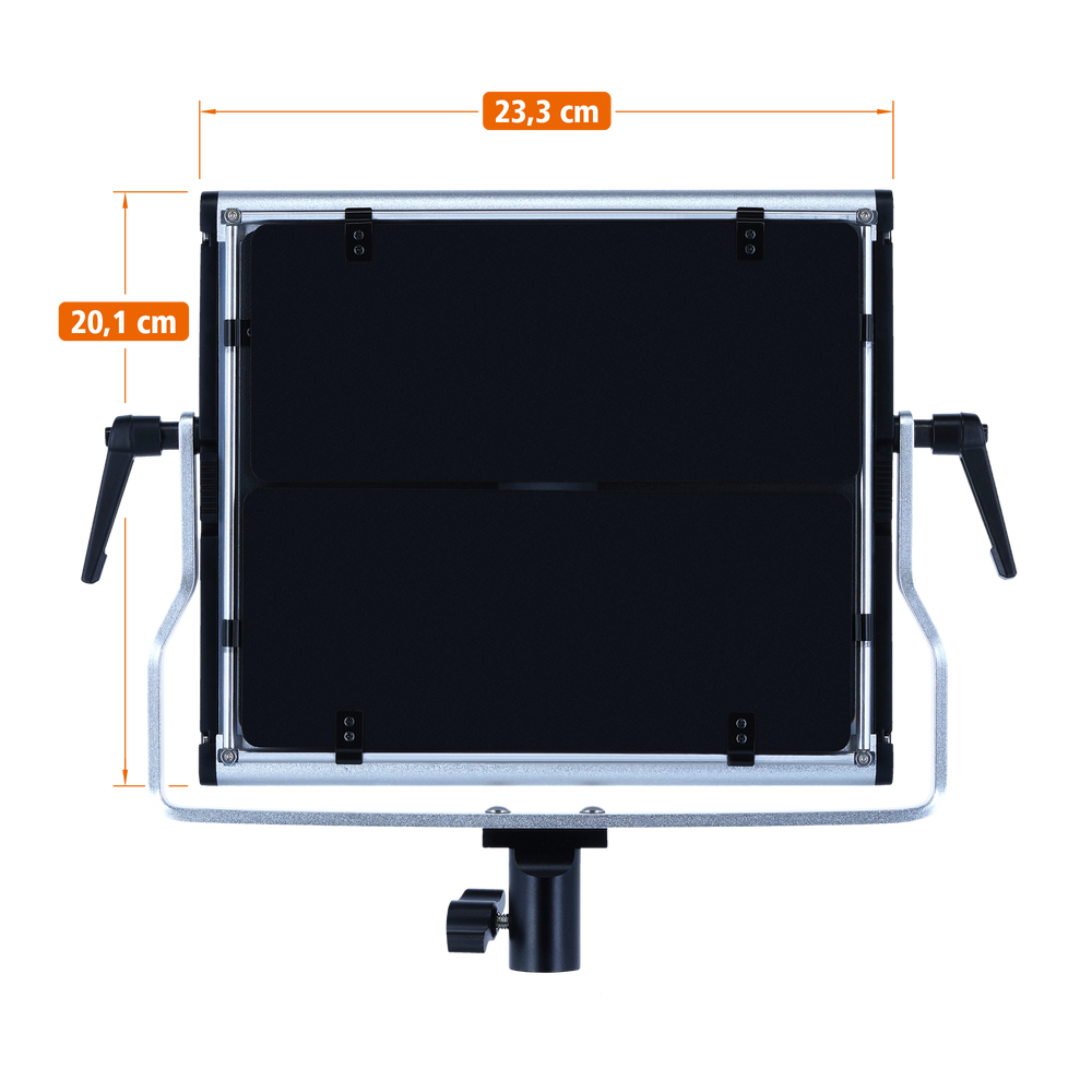 Mit einer Leistung von 30 Watt kann das Panel stufenlos von 0 bis 100 Prozent in der Helligkeit eingestellt werden. So kann die Beleuchtung perfekt an die Bedürfnisse der Umgebung angepasst werden, so wie Sie es für Ihr Shooting gerade benötigen.