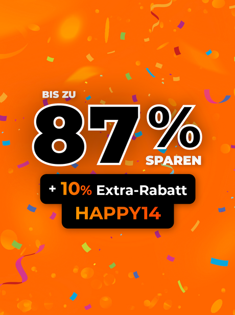 Entdecke unsere Geburtstags-Deals und sichere dir mit dem Code "HAPPY14" zusätzlich 10% Rabatt auf das gesamte Sortiment!