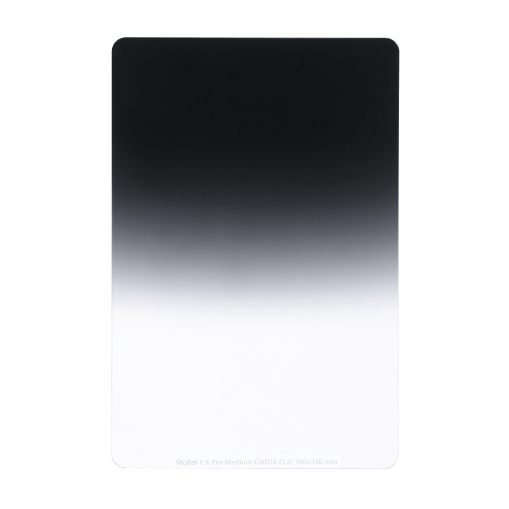 Der Rollei F:X Pro Medium GND ist ein Grauverlaufsfilter, auch Graduated Neutral Density Filter genannt. Bei Verlaufsfiltern läuft die Tönung (Coating) zu einer Seite aus. Das Wort ‚Medium‘ steht hierbei dafür, dass die Intensität der Tönung von einem Ende des Filters zur Mitte hin mittelmäßig stark ausläuft und nicht etwa mit einem sehr harten Schnitt (Hard GND) oder sehr weich (Soft GND) endet. Unseren Medium GND-Filter erhalten Sie in drei unterschiedlichen Intensitäten: