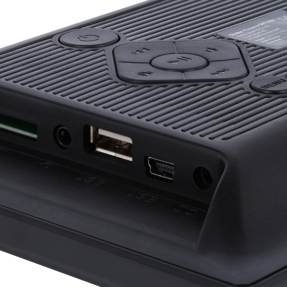 The variety of connections Rollei Pissarro DPF-880 offers you maximum flexibility. thanks to the Integrated SD/MMC memory card slot, USB-A port and mini-USB port can you Memory cards, USB sticks or other storage media Connect to the frame and play the photo, video and audio files stored on it. You also have the option of sending the picture frame via Mini USB cable connect to your computer to manage your files. And if you don't want to hear the sound of the video and audio files via the integrated speaker, the Pissarro DPF-880 also offers an integrated jack connection with which you can connect your headphones.