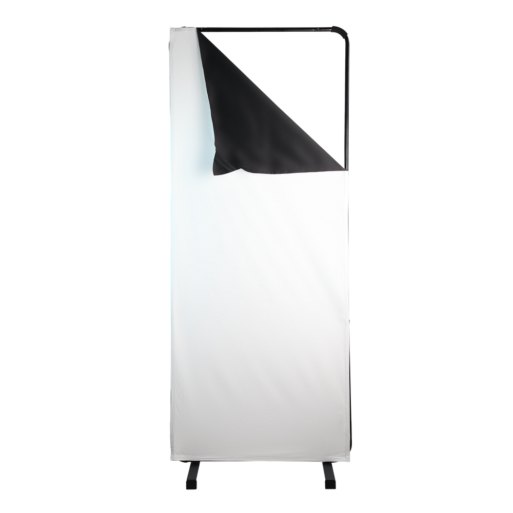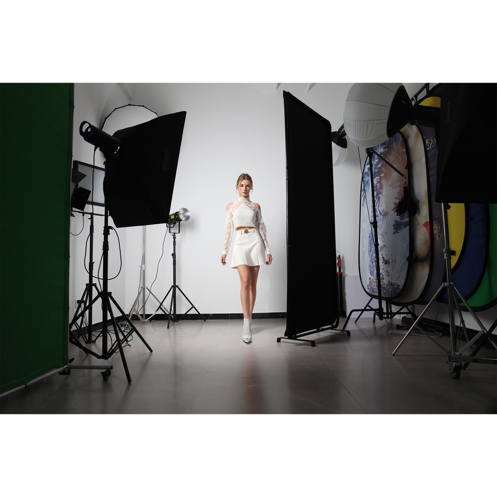 The V-Flat Set offers an excellent Light control. The white sides reflect and direct the light and fill shadows on the subject, while the black sides absorb the light and deepen the shadows on the subject. This guarantees one differentiated lighting control, which highlights every detail of your subject.