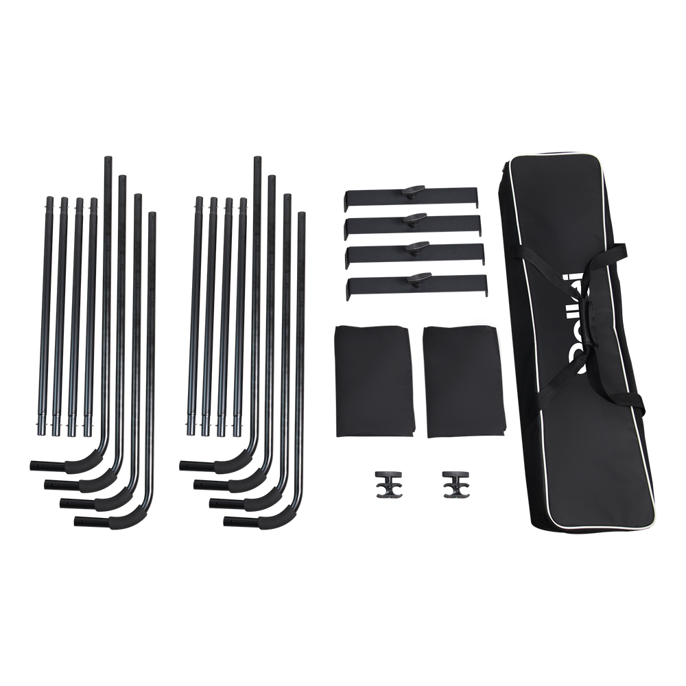 The material of the V-Flat Sets is made of matt, opaque fabric and the frame is made of robust aluminum, that for longevity and stability ensures. These high-quality materials ensure long-lasting performance that you can rely on.