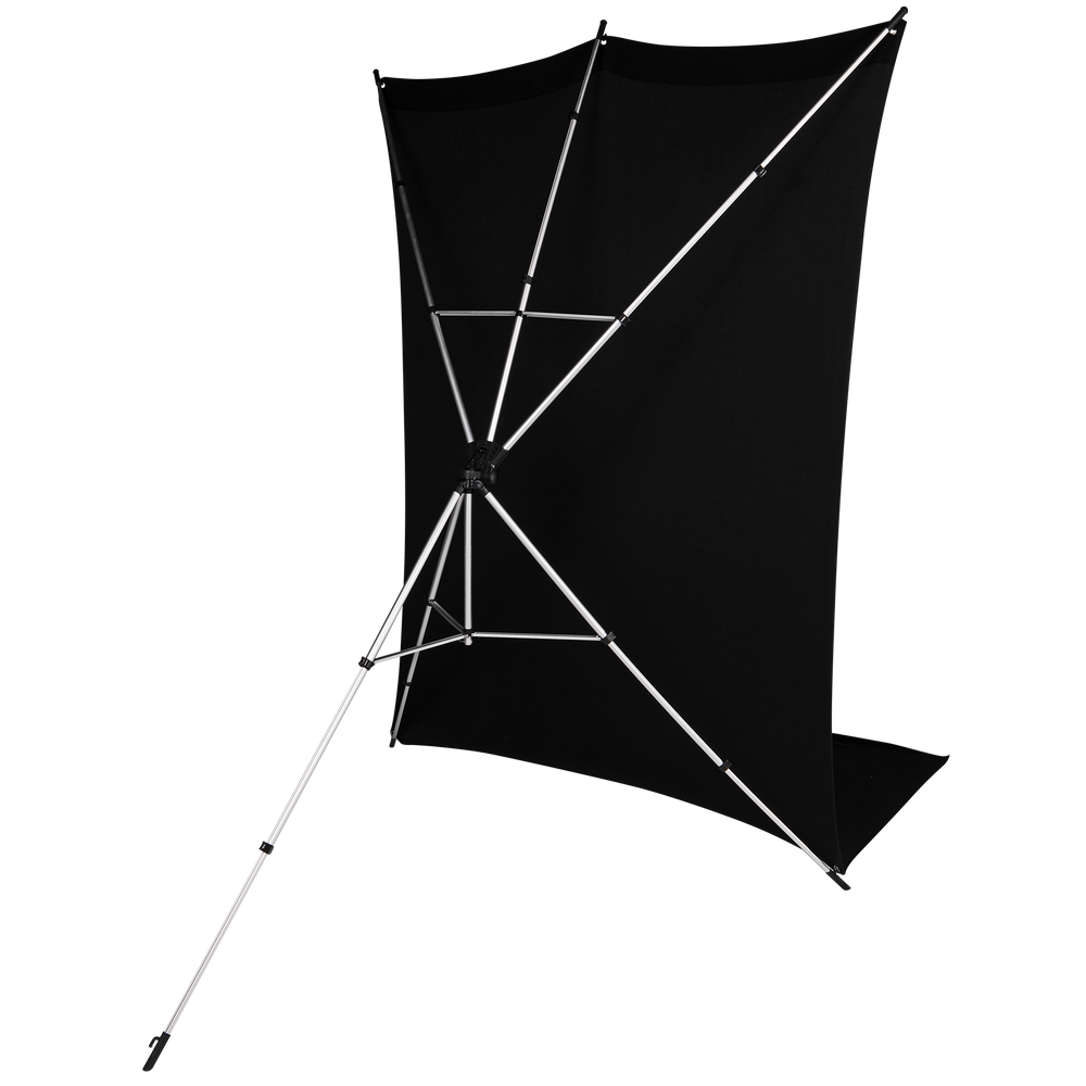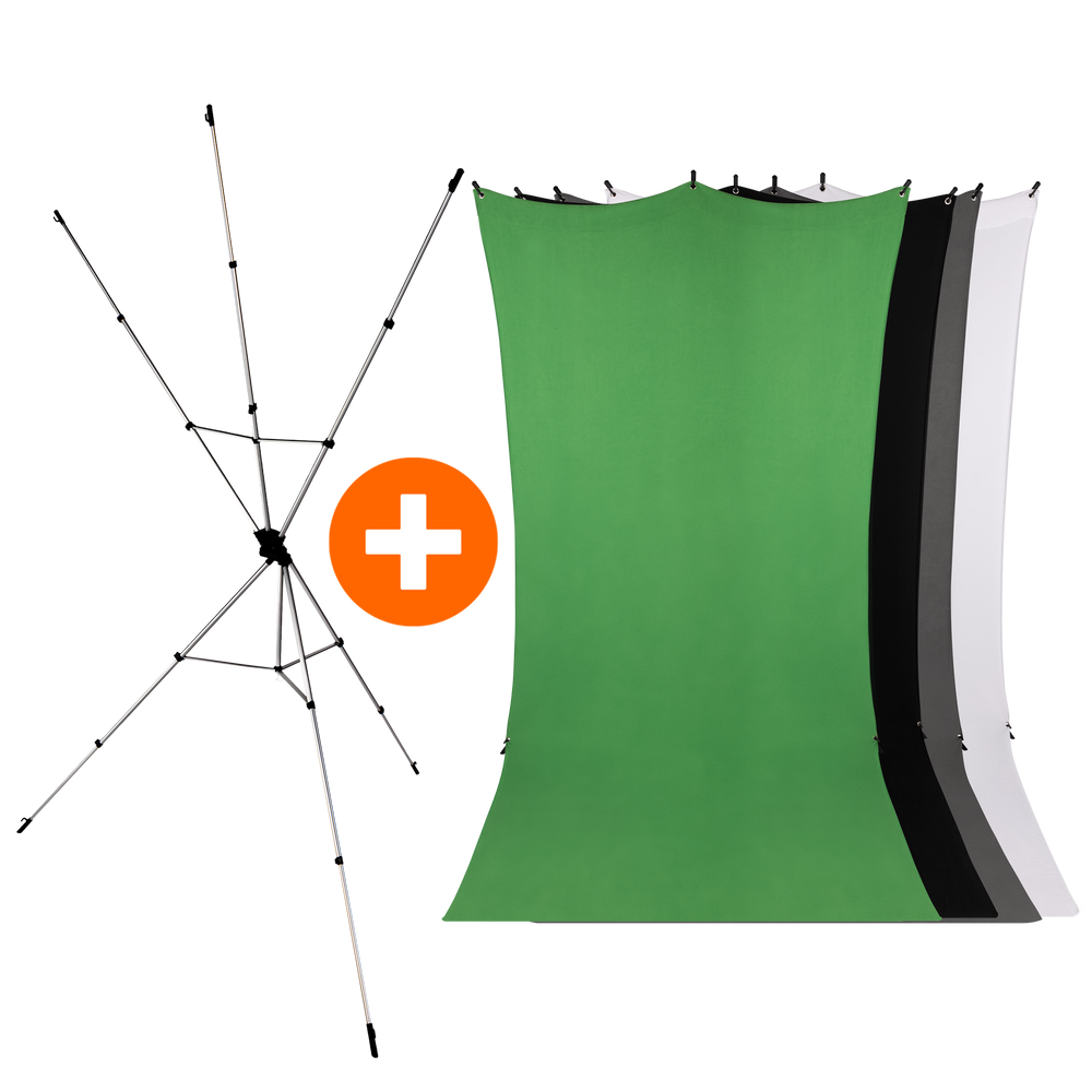 With our X-drop background set you get that X-drop background frame as well as a practical Bag and the X-drop background 3.0 x 1.5 m In the respective colors green, black, white or gray.
