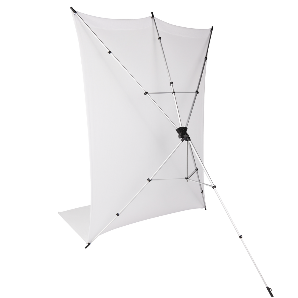 The Frame of the X-drop background set consists of high quality and robust aluminum. The rubber feet ensure a safe stand of the system on all substrates. The Background also has one Hook to attach weightsto ensure maximum stability and stability. Due to its high flexibility for use, it is both Indoor as well as outdoor suitable. The structure of the frame is quick and easy and does not require any additional tools.