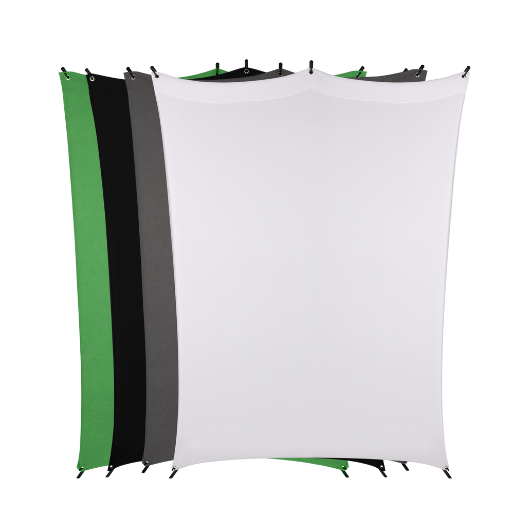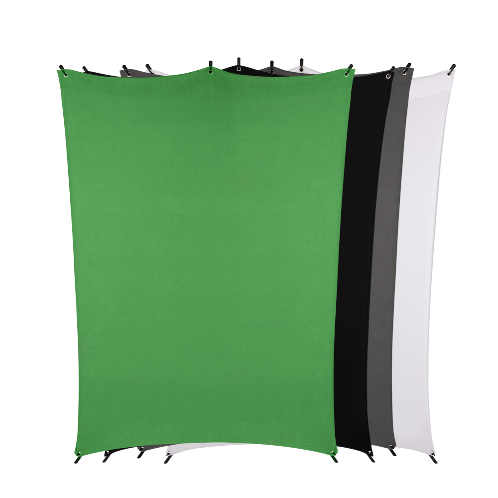 Our X drop background is in four different colors Available either use the color Green for chroma keying and insert the virtual background of your choice or the colors Black, white or gray as neutral, simple Background colors, so that the person or object is shown to its best advantage against the background.