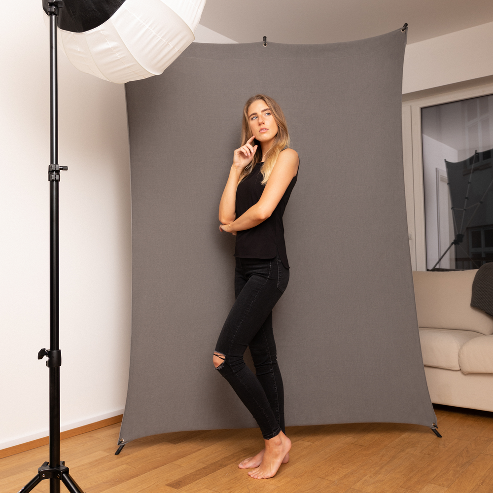 No matter whether for Portrait shoots, vlogging, streaming or for working in Home office – with the X-Drop background system and the one available separately X-Drop backgrounds Photographers, videographers, vloggers and content creators receive an even background for high-quality photos and videos of all kinds.