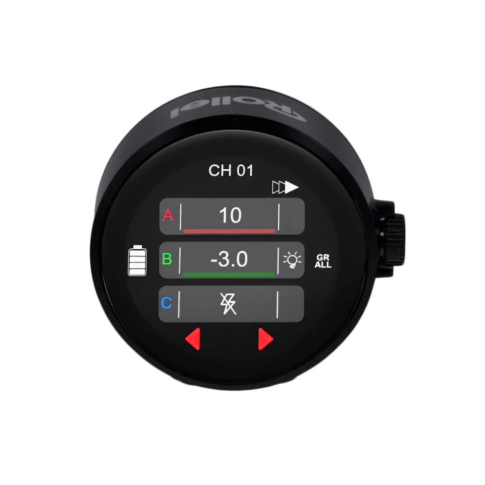 The TR-Q8 II Touch's intuitive touchscreen allows for quick and easy control of your flash units. With just a few swipes and taps , you can adjust all essential settings without having to navigate through complicated menus. In addition to touchscreen operation, the TR-Q8 Touch features a convenient control dial (crown) for quick and precise adjustment of key settings such as flash power and group selection.