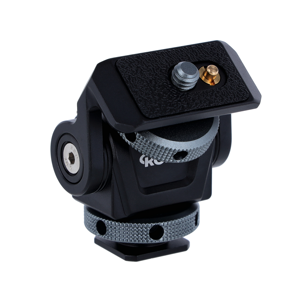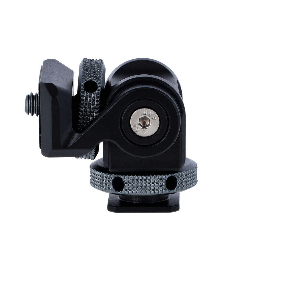 A feature of the Mini Coldshoe Adapters is its flexibility. Through his tiltable orientation it can be perfectly adapted to your specific needs. Whether you want to mount your camera on a tripod or just place it on a flat surface Mini coldshoe adapter adapts to your requirements.