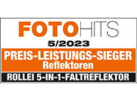 The 80 cm collapsible reflector covers the 5 most common application options in one product: Use the diffuser to brighten disturbing shadows in the subject or for exciting light effects. The reflector option offers you four surfaces that produce very different effects: The silver reflector adds the desired amount of harsh, cool light to the subject. With the gold reflector, you can give the model or product a finely dosed extra portion of warm light. The white reflector brightens details or larger areas depending on the position, while the matte black reflector easily shades overexposed zones. The circular Rollei Professional 5-in-1 reflector has a working diameter of 80 cm, is quickly adapted to requirements with the interchangeable cover, and takes up hardly any space when folded in the included bag.