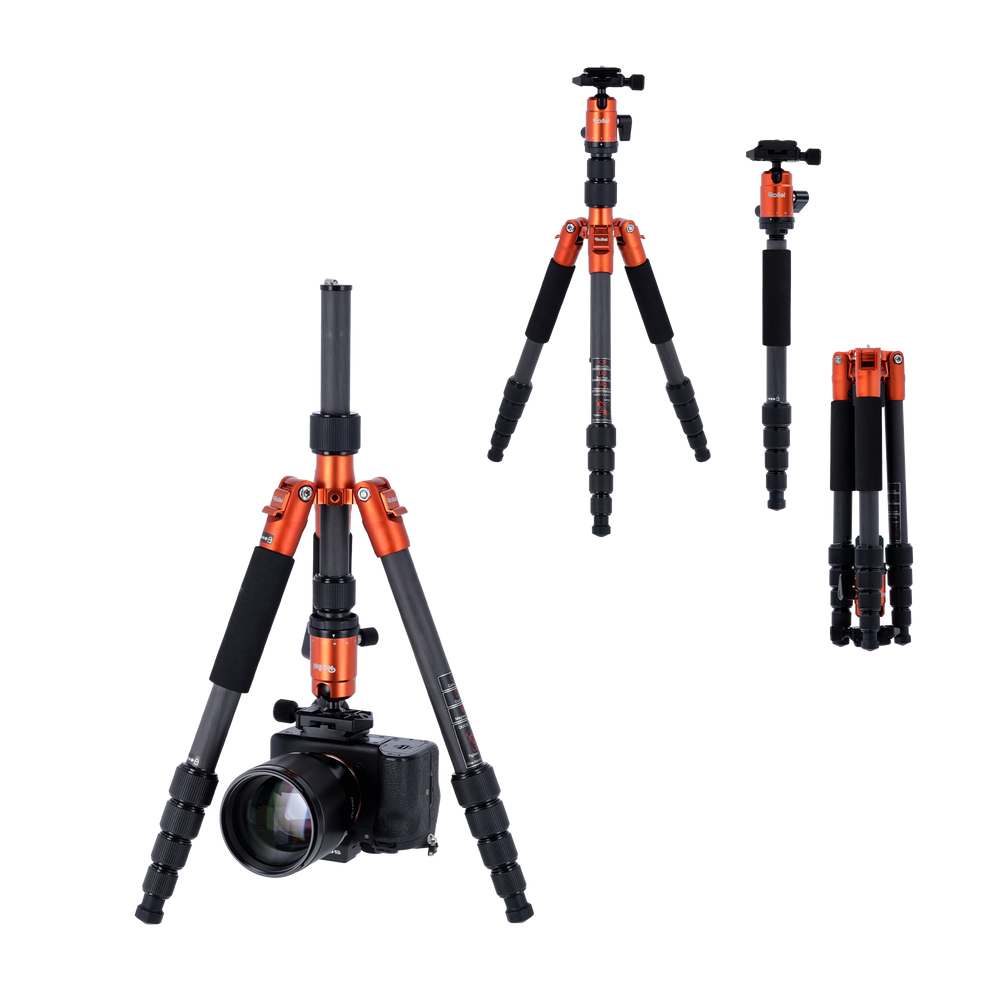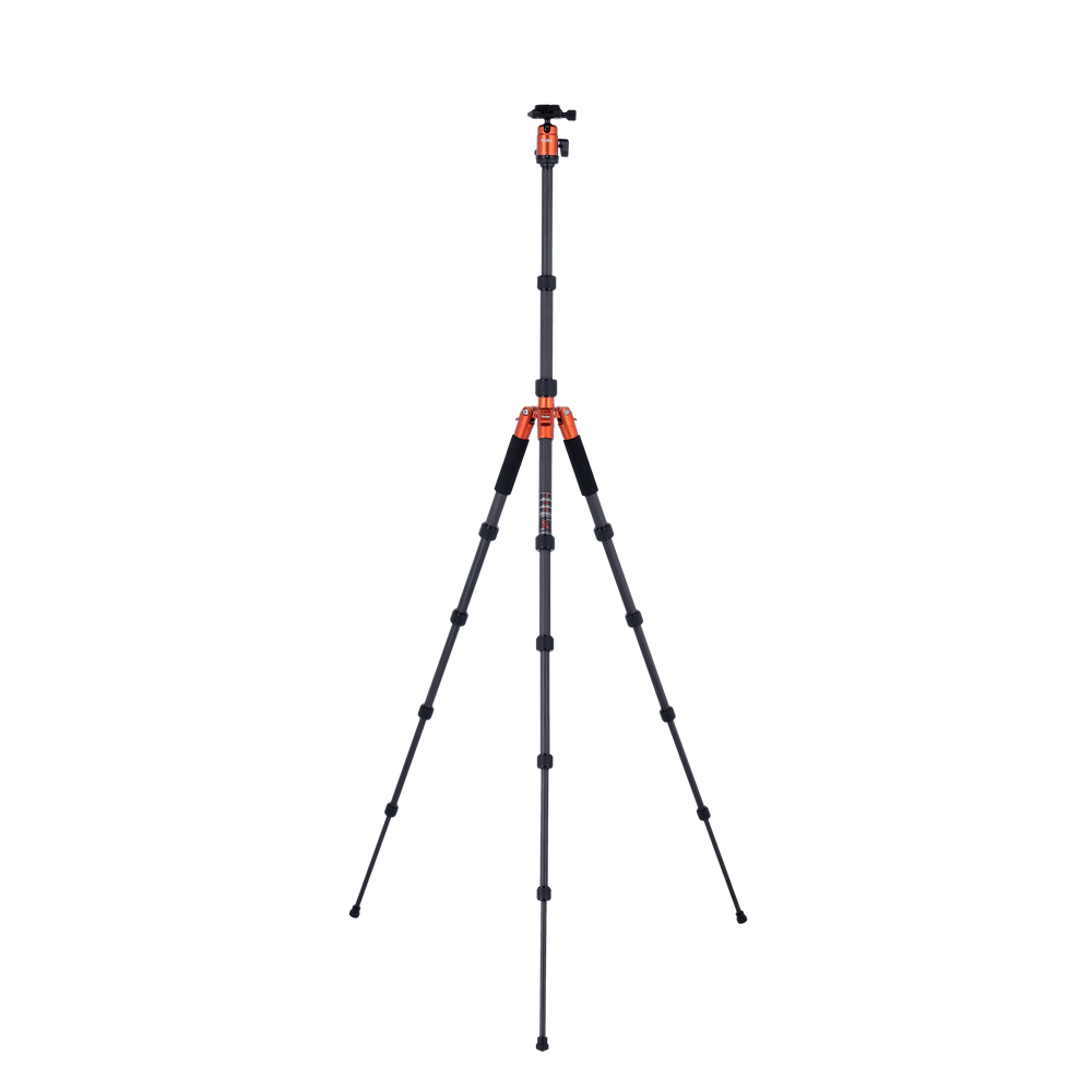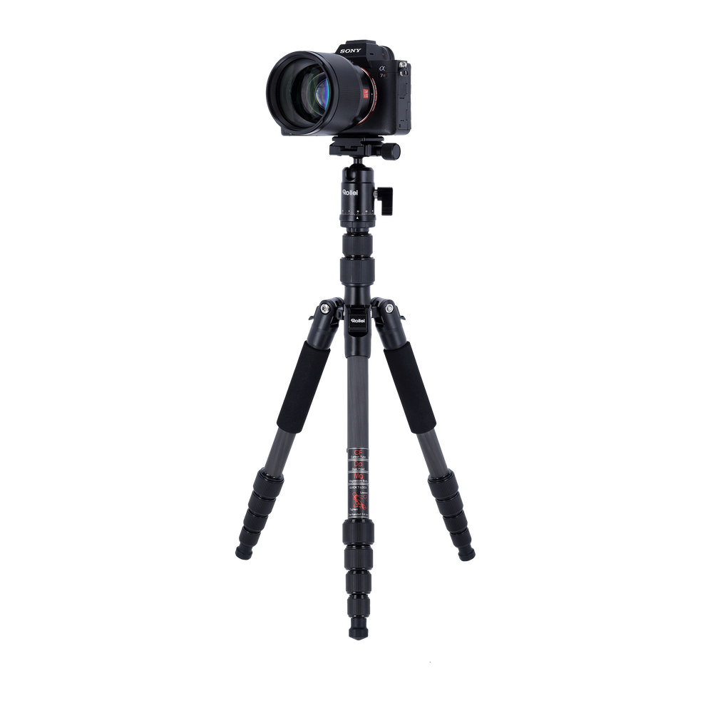 Das Stativ ist aus hochwertigem Carbon gefertigt, einem Material, das für seine bemerkenswerte Robustheit und Langlebigkeit, gleichzeitig aber auch für sein geringes Gewicht bekannt ist. Dies garantiert eine außergewöhnliche Stabilität, sodass Ihre Kamera zuverlässig und sicher positioniert ist, unabhängig von Ihrem Aufnahmeort.
