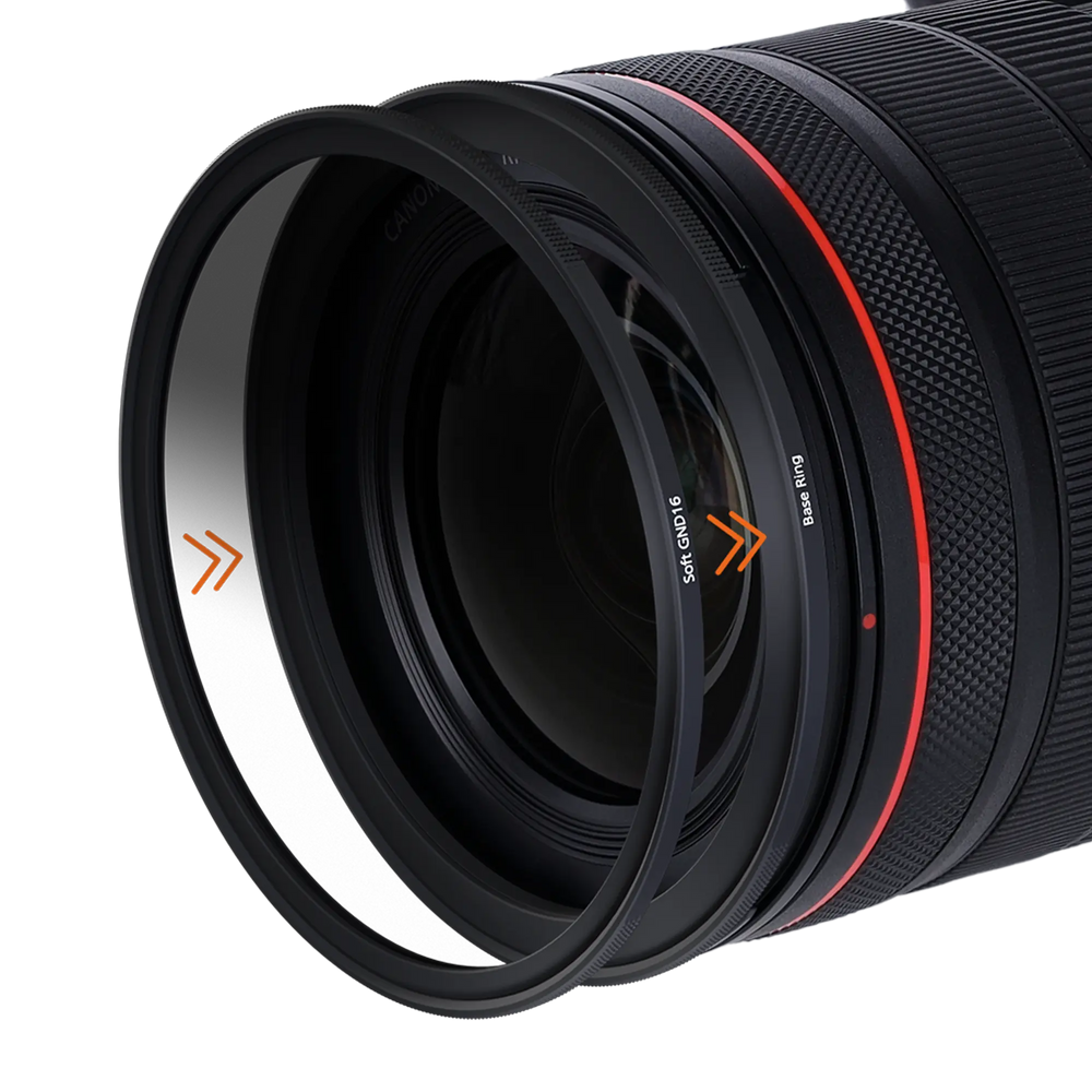 Für die Montage der F:X Pro Magnetischen Rundfilter Mark II am Objektiv ist der F:X Pro Magnetische Basisring Mark II oder ein F:X Pro Magnetischer Step-Up-Ring Mark II nötig.