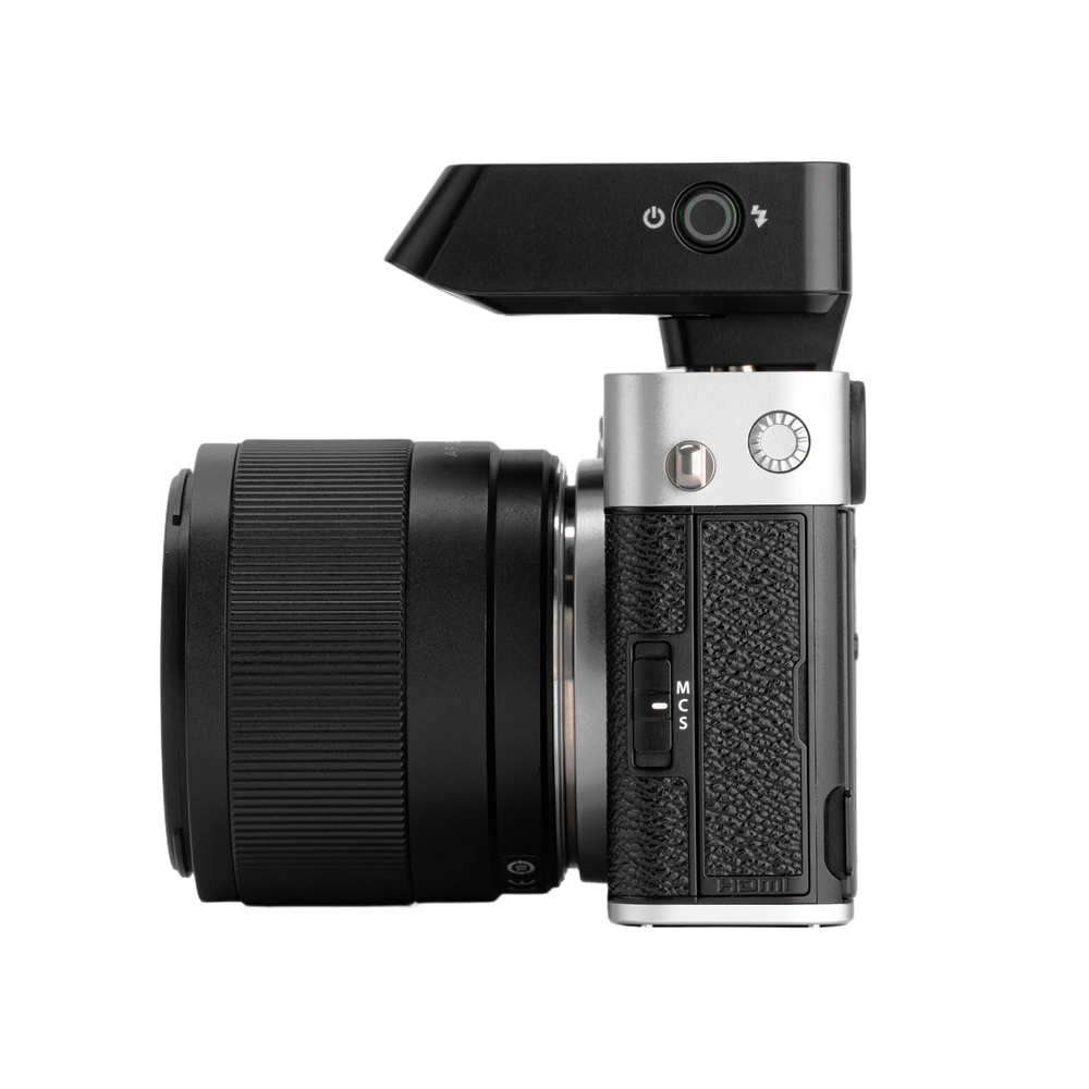 Ein echter Hingucker: Das ultrakompakte Gehäuse sieht nicht nur schick aus, sondern fügt sich perfekt in dein kompaktes Kamera-Setup ein. Nostalgie-Design, das immer in die Tasche passt.